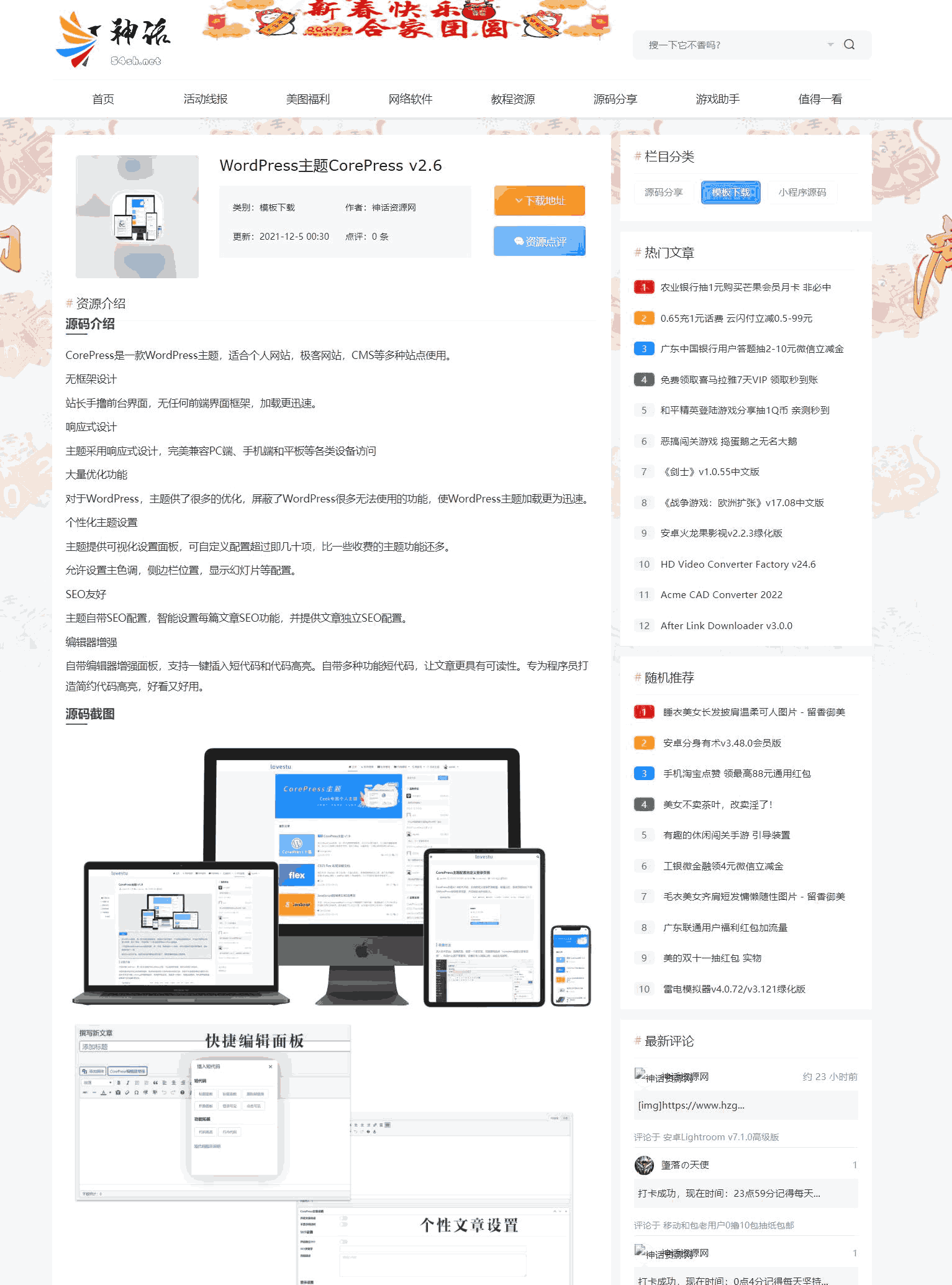 SYtheme皇族定制版,网站快速秒开!首先模板采用了一键安装,无需操作数据库;模板外观整体升级 最新文章支持无限加载文章无刷新切换分类。