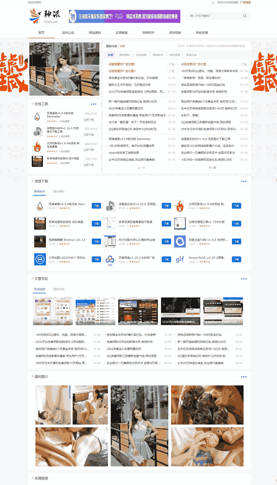 首页:幻灯支持大图模式 文章轮播切换,所有模块都适配在模板设置设置
